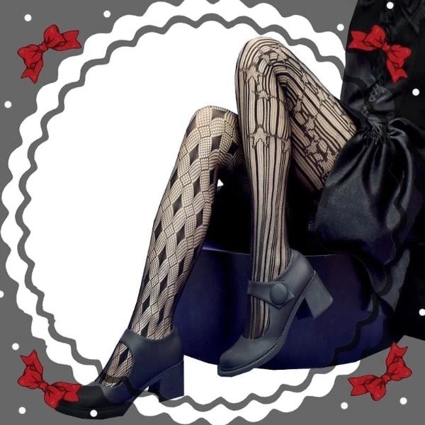 Medias de red negras con elastico en cintura y diseño de carnaval.
