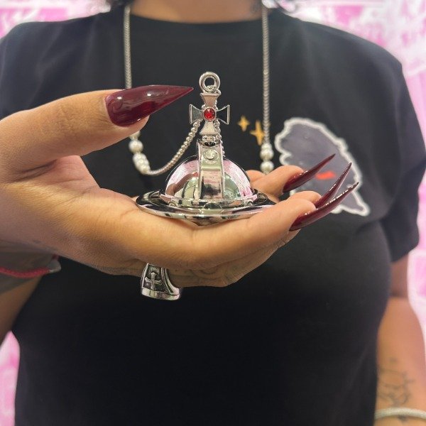 Hecho con aleaciรณn de zinc resistente, con un acabado de pedrerรญa. Cadena Acero Inoxidable. Mini orbes de Acero Inoxidable.